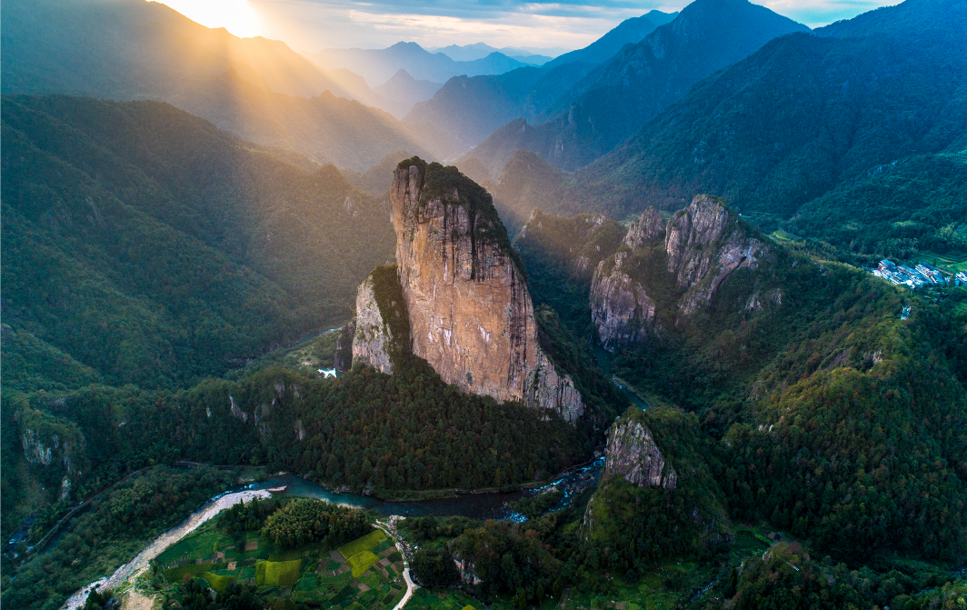 石桅岩是一亿多年前火山喷发形成的一座孤峰,在溪谷之间拔地而起,形状像船桅,因此而得名。