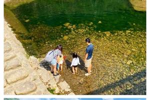 09:30 到达画中芦茨村,我们沿着河边小道行走,溪水潺潺,绿水青山施粉黛,富春游人款款来,携一两好友谈天说地,将生活的烦恼抛开脑后。顺着溪水而走,不久就来到了茆坪村,这里沿着芦茨溪拉成一个长条状的村落,房屋顺着溪畔的地势高低错落分布着。我们途中找一处地方休息,分享大家带来的美食。