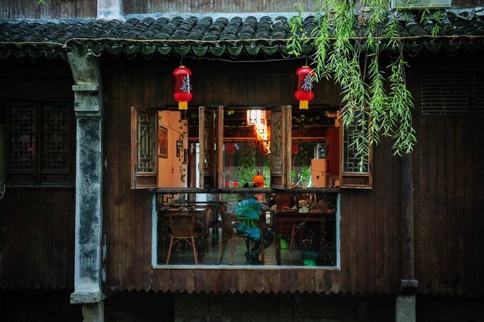 很多古镇在发展旅游的过程中,本地居民被旅游产业完全置换,导致商业气过重。枫泾古镇却较好地平衡了居住生态与商业旅游,本地居民依然闲适地生活在这里。因而古镇风貌总体看起来简约素朴,保留着难得的生活气息。