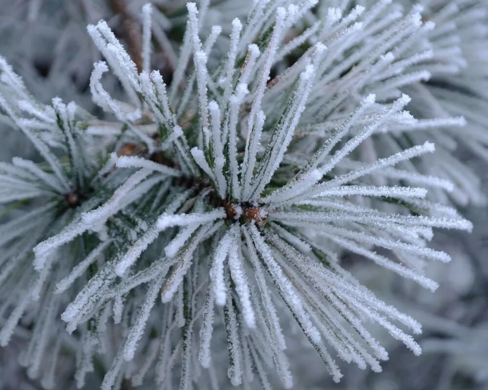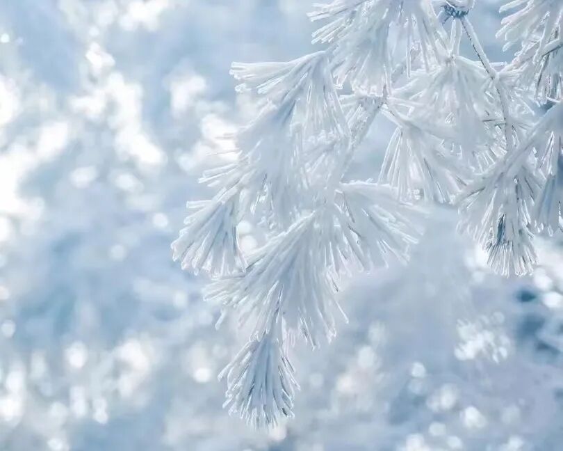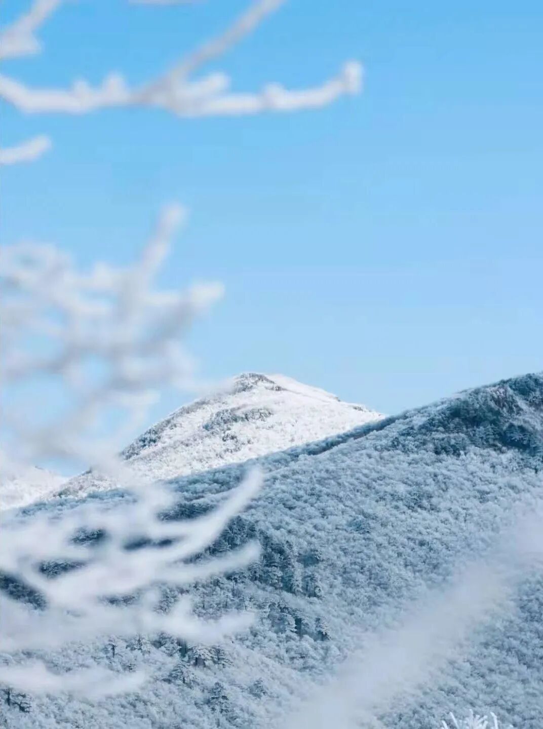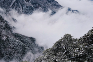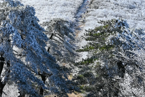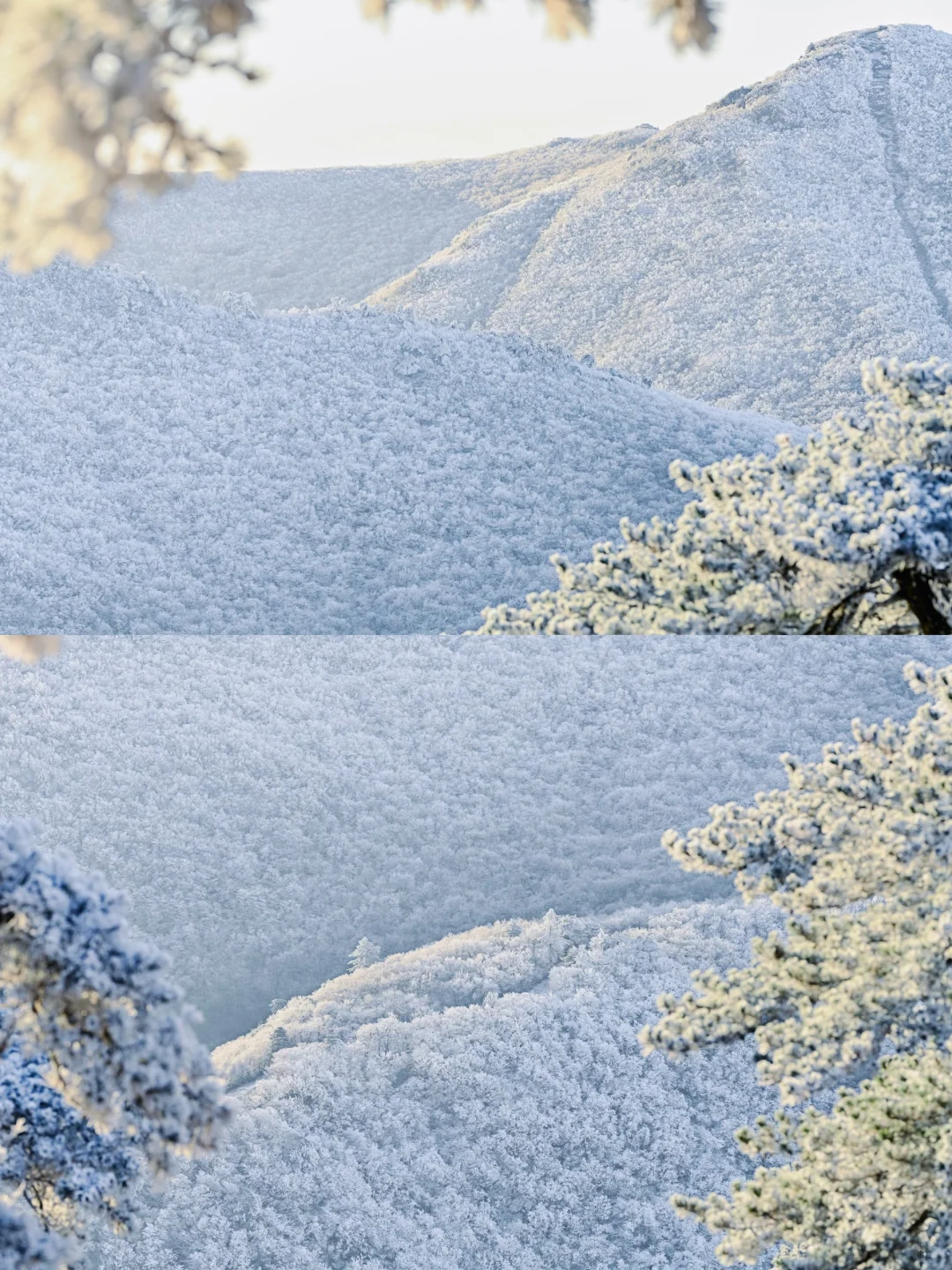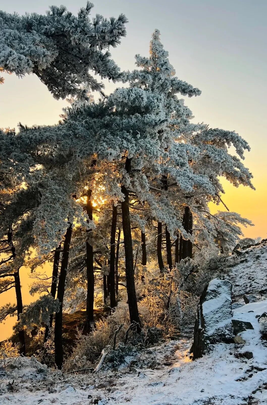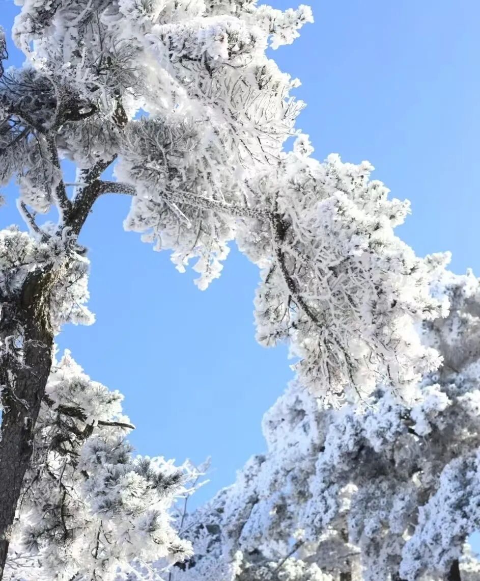 整片的黄山松枝变成琼枝玉树,一片晶莹