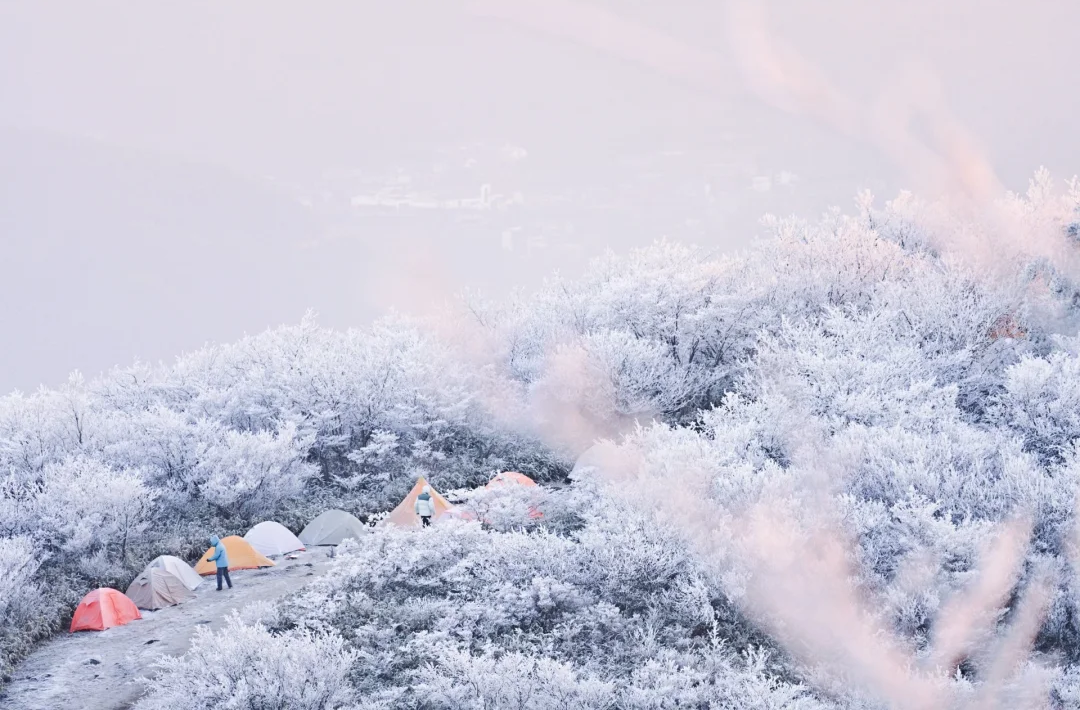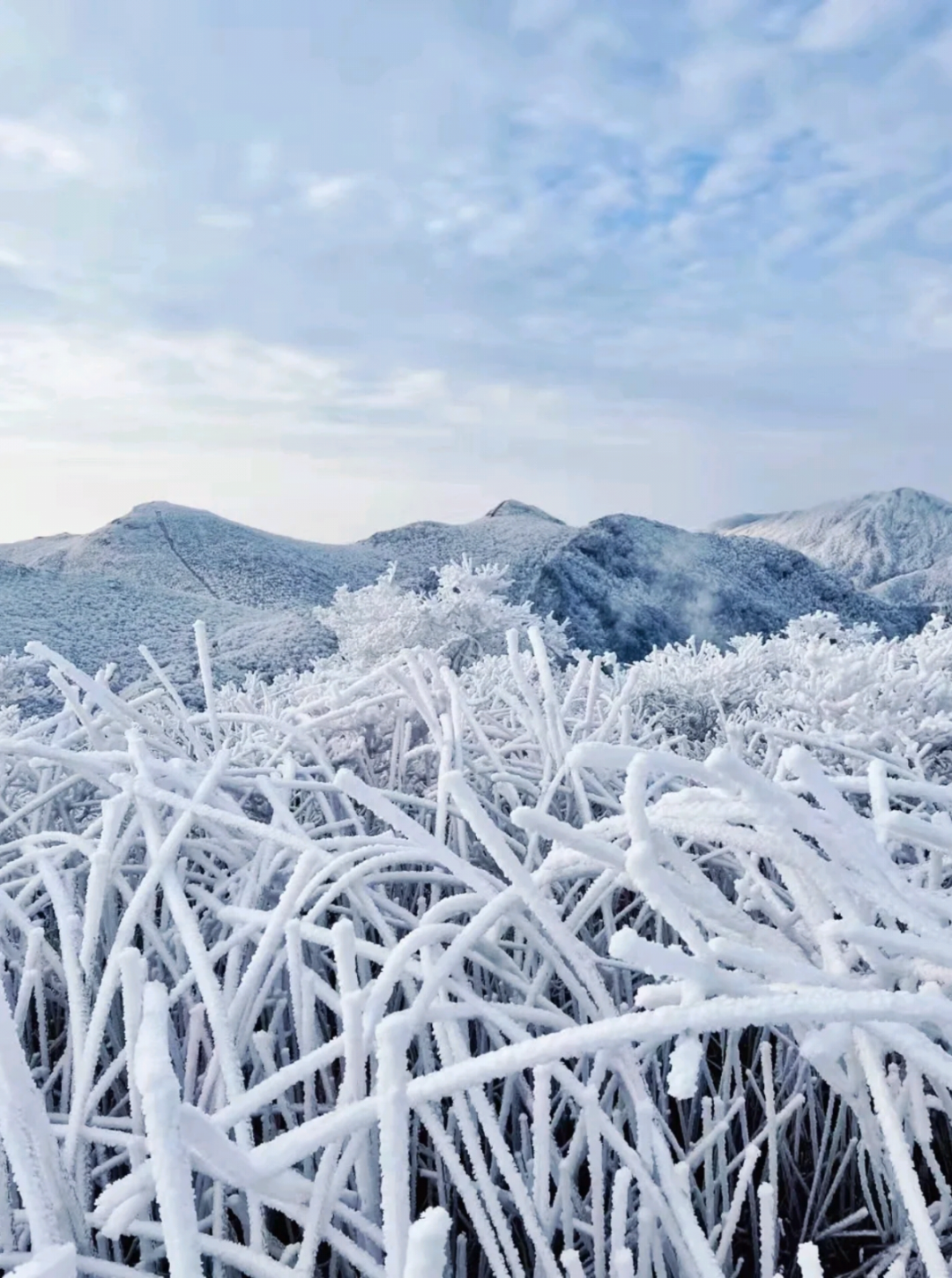 桐杭岗以其独特的雾凇景观成为了一幅动人心魄的自然画卷