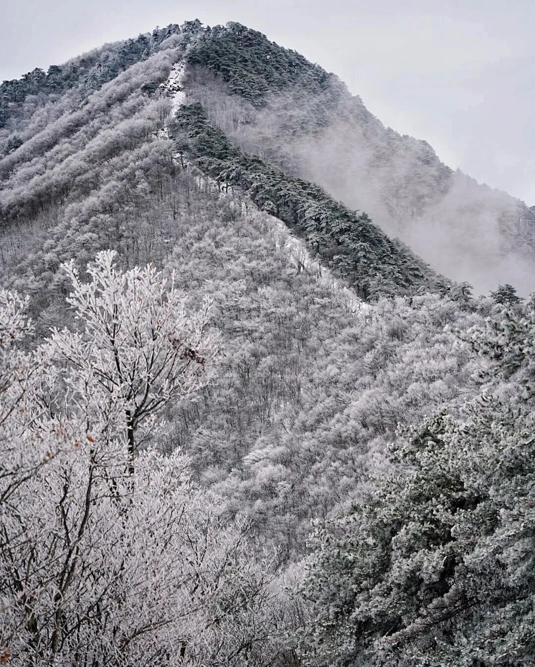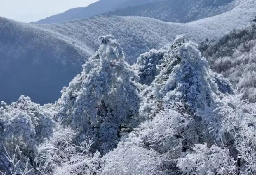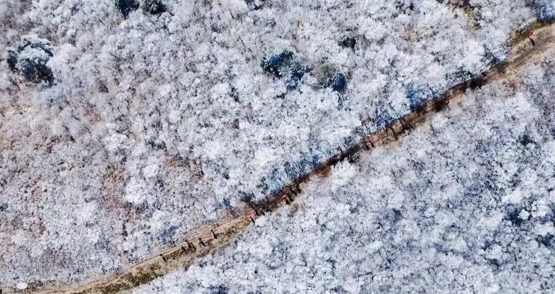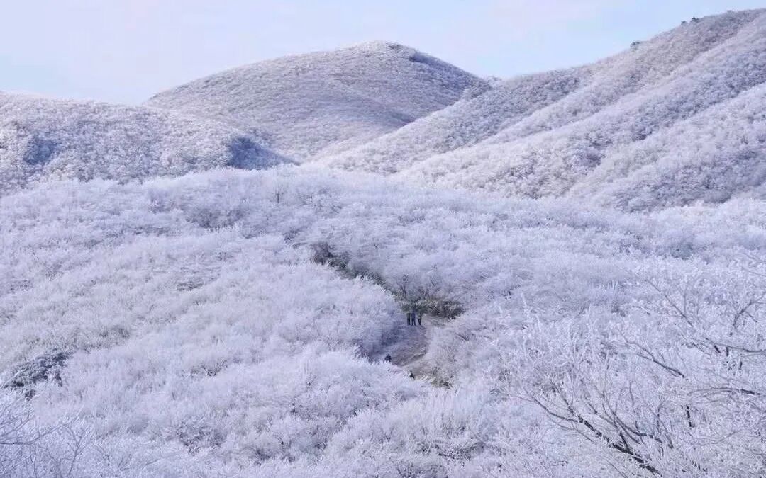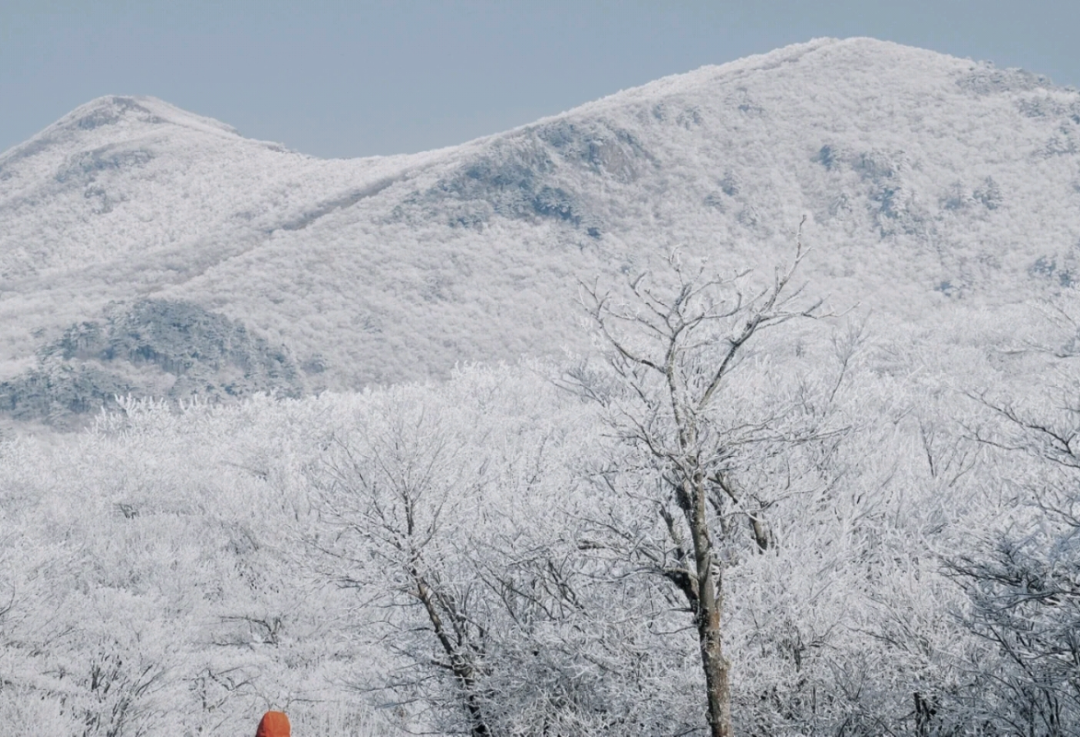 走入这座被雾凇装点成冰雪童话世界的山岗