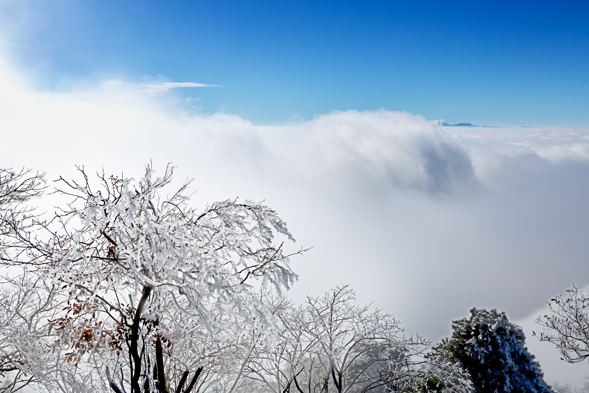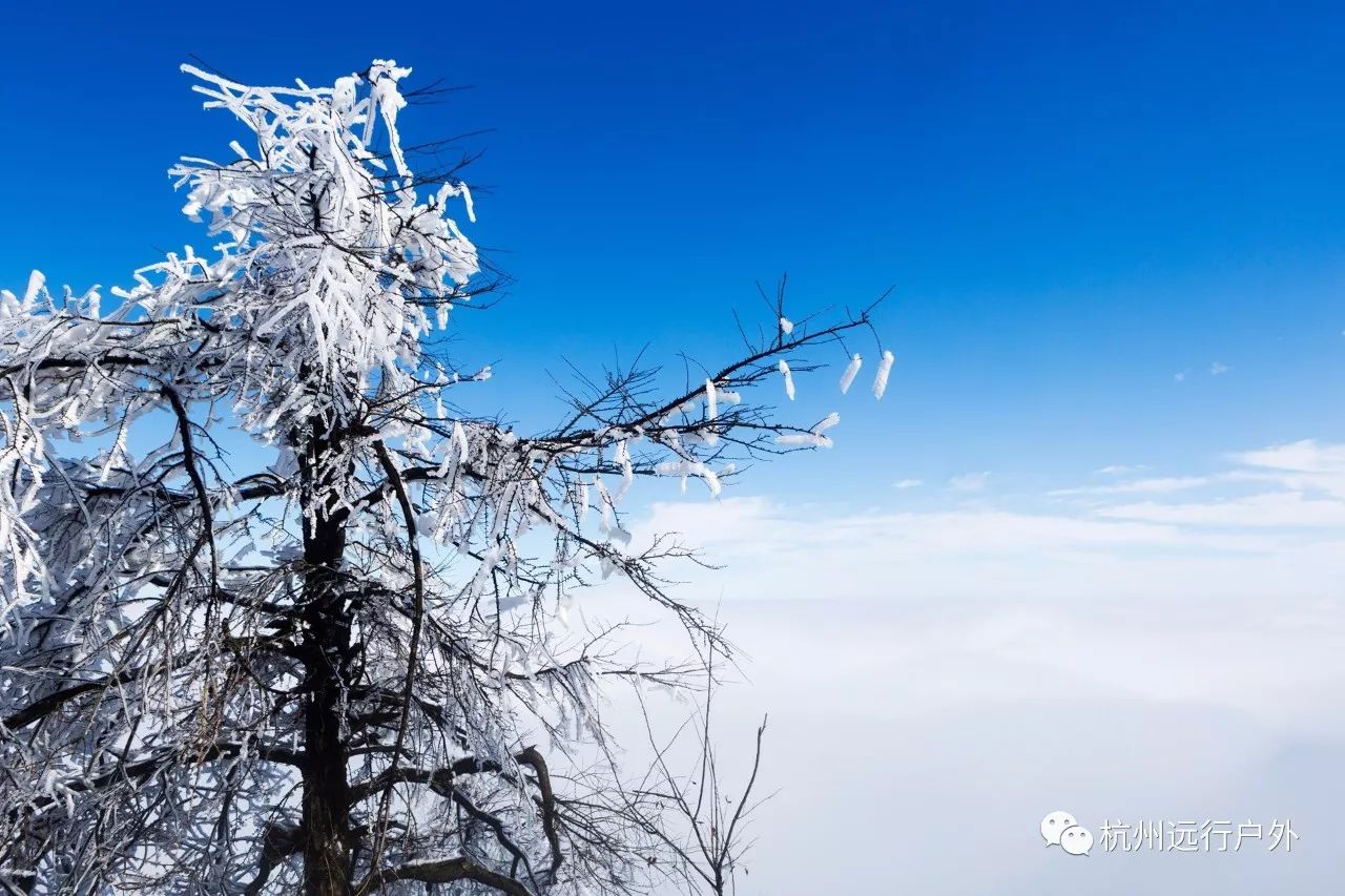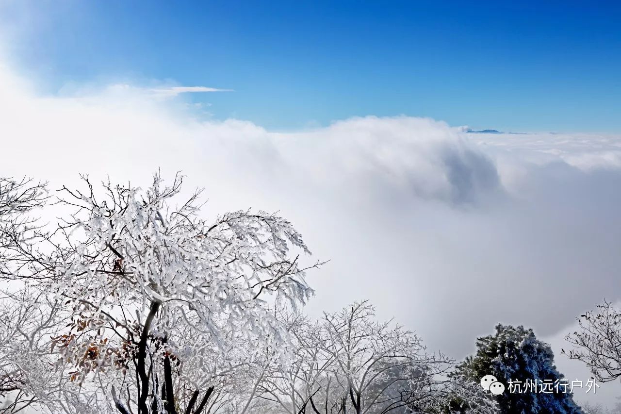 冬季的杏梅尖,登顶一眼望去望去,云雾缭绕,山峦叠嶂,仿佛置身于童话仙境般,入冬后的杏梅尖玉树凌空,风景奇佳,登顶后无限风光尽收眼底。