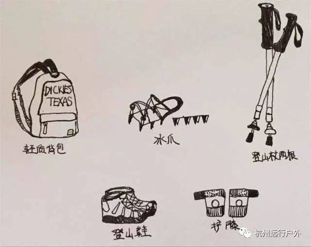 鞋子:登山鞋,运动鞋(拒绝高跟鞋,拖鞋等不合适徒步的鞋)