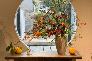 龙形水系旁凌霄花攀着老墙,