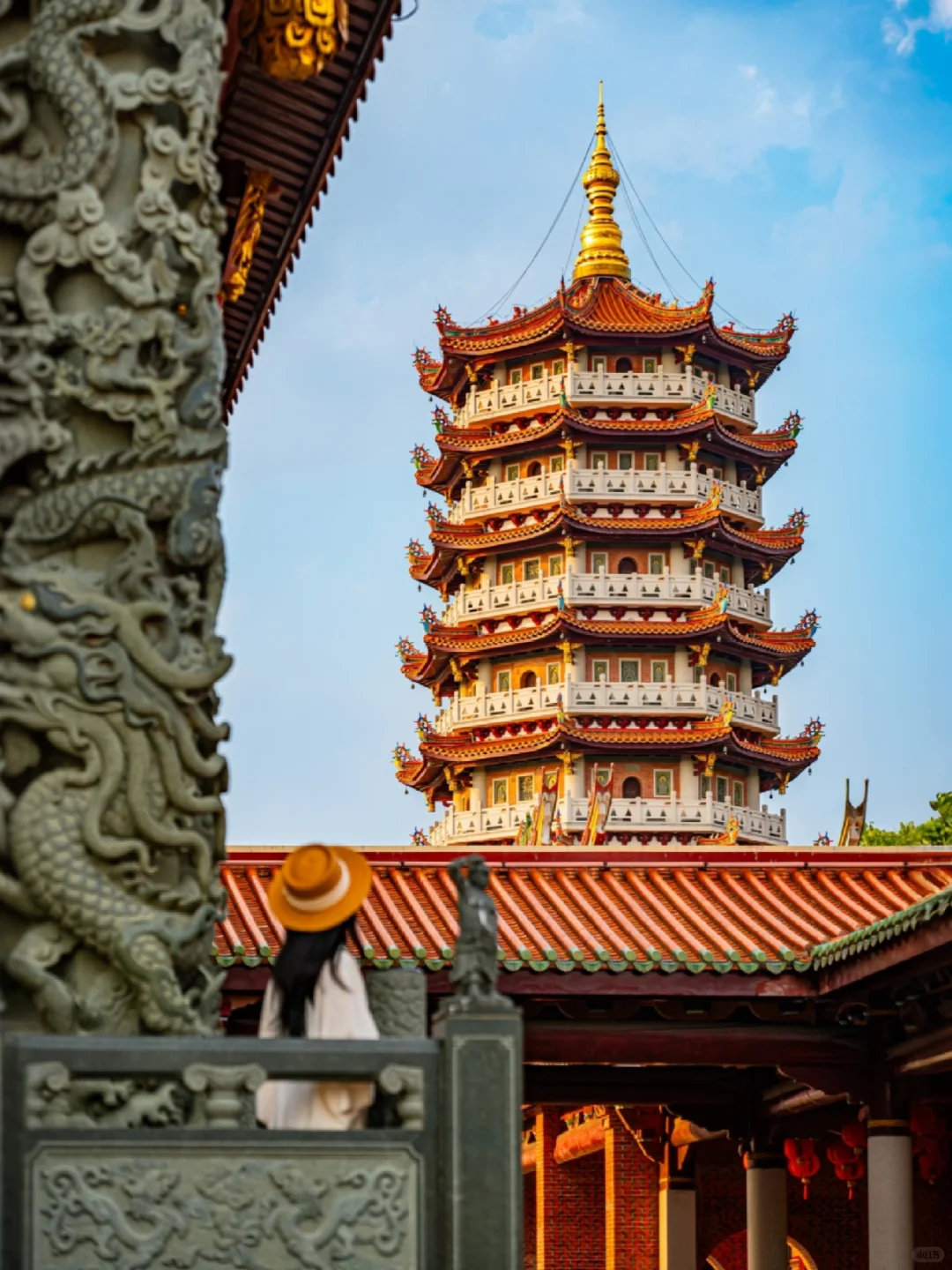 天后宫的凌霄塔与灯笼阵自带禅意滤镜,