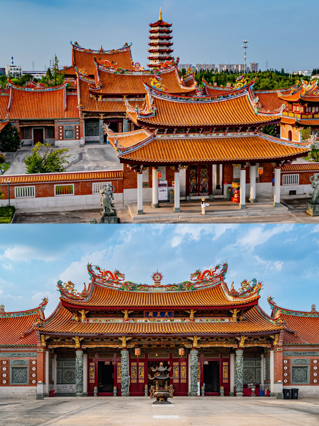 10:00 我们到达目的地——昆山慧聚寺,这里是华东地区以“闽台”风格、鹿港特色规划的寺庙建筑群,汇聚两岸宗教、艺术、人文、历史、建筑,渡海从鹿港龙山寺、天后宫引进两岸香火。寺庙内的建筑精美绝伦,一定要去参观主殿,感受浓厚的佛教氛围;登上寺内的楼阁,还能俯瞰周边美景。