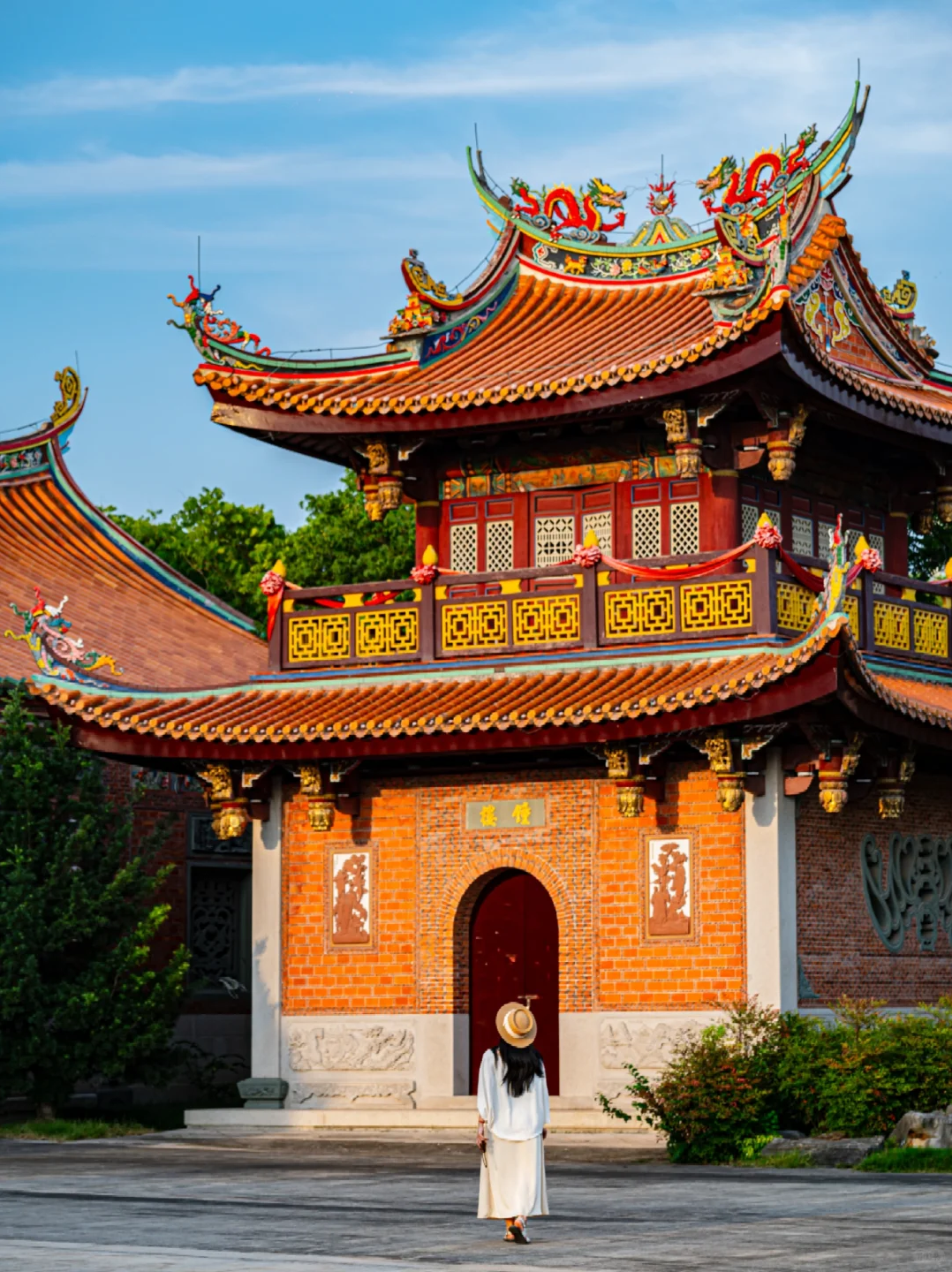 红砖古厝、燕尾飞檐,