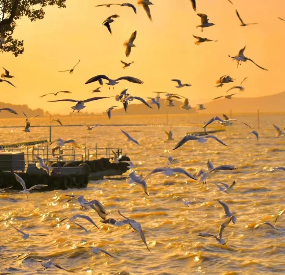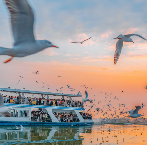 🔸 日落秘境:橘色余晖洒向湖面,鸥群掠过天际,随手一拍即是大片。