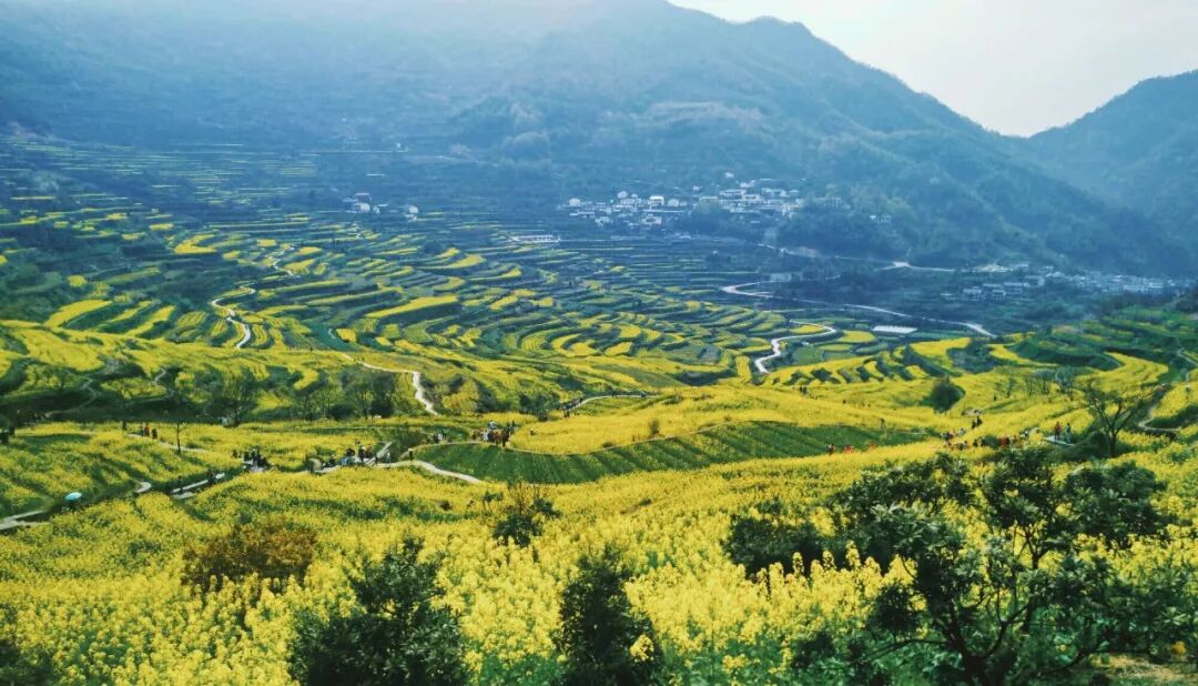 作为华东最美十大金花胜地之一的“覆卮山油菜花海”,漫山遍野的油菜花呈梯田状,从山顶铺散到山谷下,十分壮观,春风一起,波浪翻滚,煞是壮观。