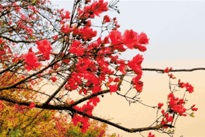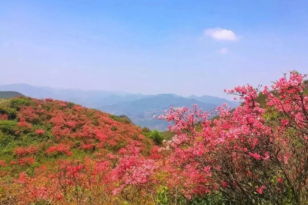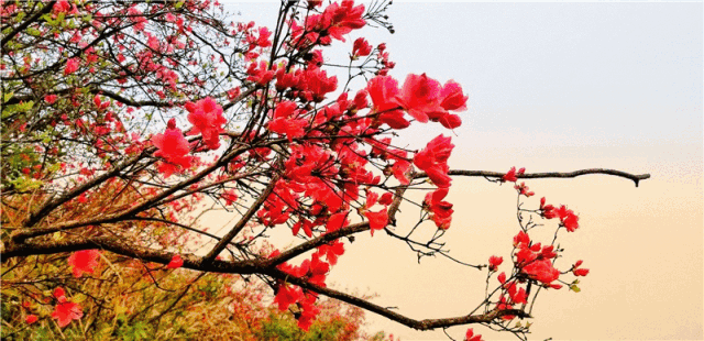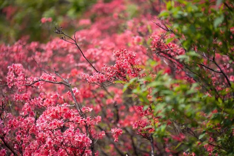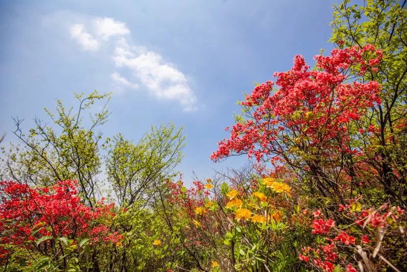 餐后 驱车从160多米海拔的合岭水库开始往上,一直到860多米海拔的山顶,漂亮的风景,无人无车的乡间小道,满山的毛竹,你肯定会爱上这里。阳田山上探寻一大片杜鹃花海,红艳艳的压在山头、嵌在山中。越过一个山头,火红的杜鹃花中惊现了一丛丛黄色的杜鹃花身影,在这片“火海”中异常夺目。
