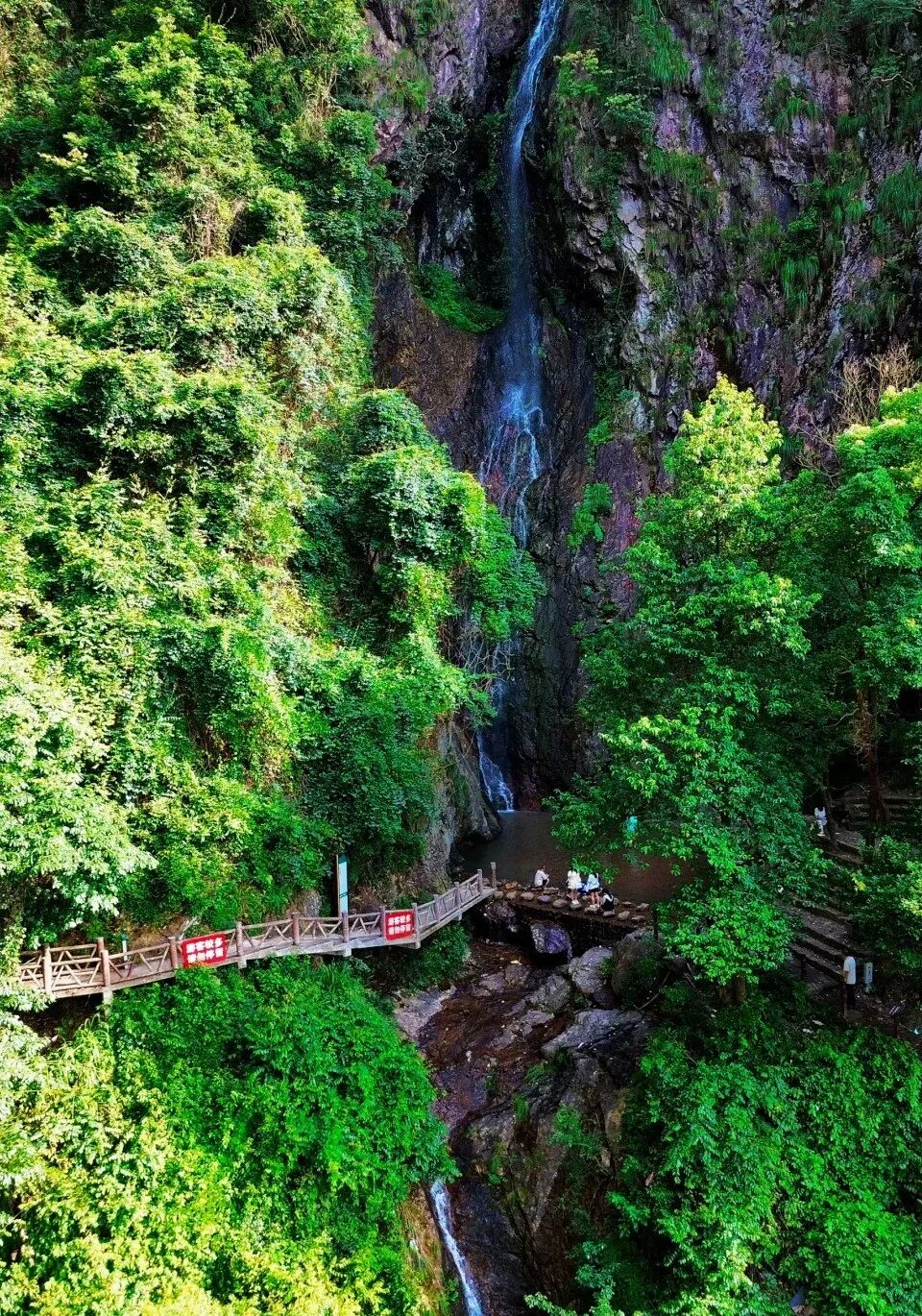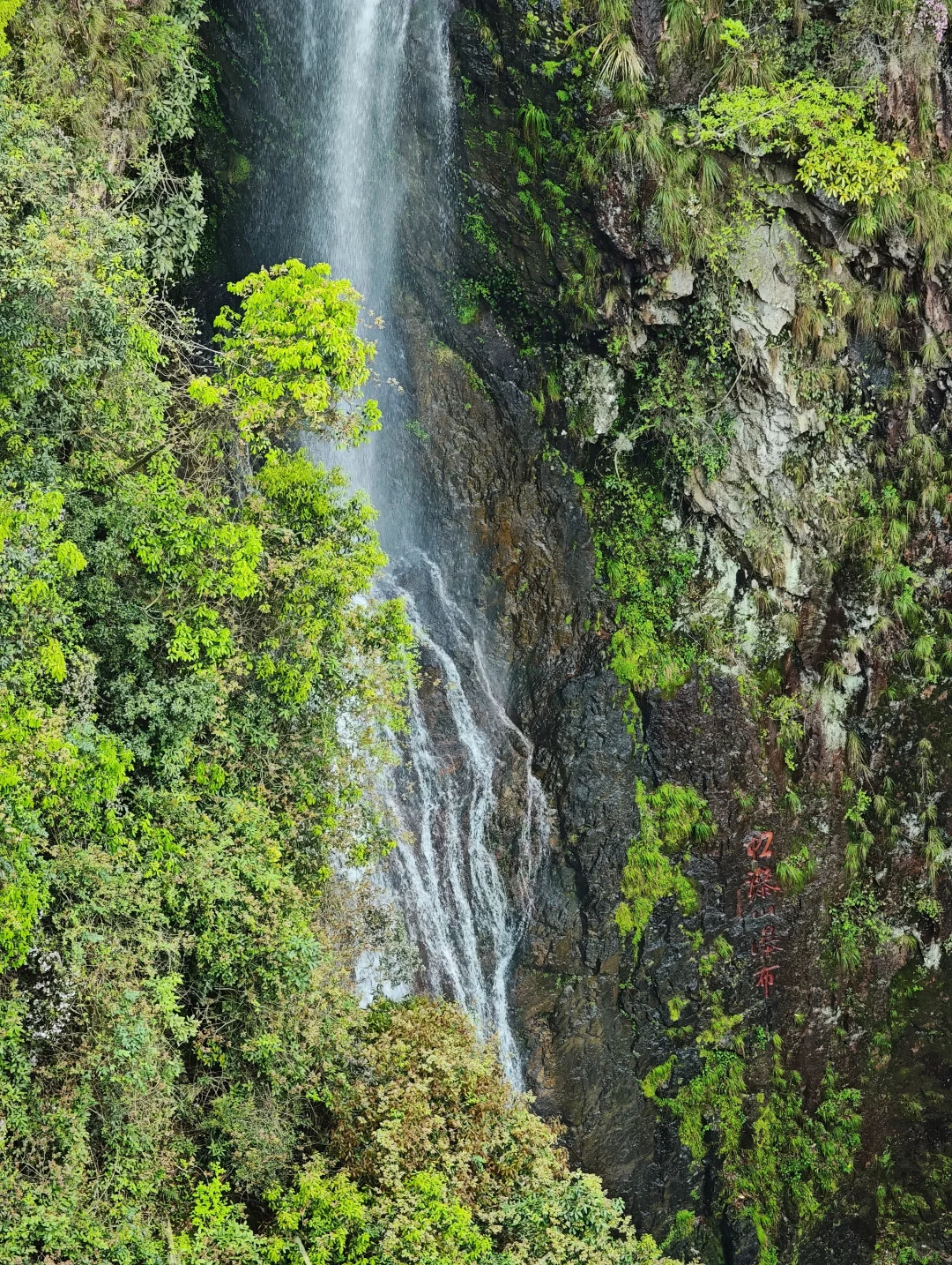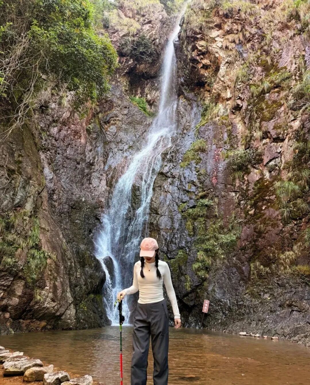 10:00 我们到达【松瀑山】,位于义乌市赤岸镇乔溪村,地处浙江陆地地理中心点,属双峰山北麓组成部分。该山自宋代起即为游览胜地,以多级瀑布群为核心景观,凌空百余米的瀑布冲岩击石形成壮观水景,溪流在密林山崖间形成高度落差。山间乔峡两侧峭壁高耸,峡底清泉穿石成瀑,崖壁现存“松瀑泉石”宋代石刻及题诗残迹。(全程7km左右,累计爬升400~600米)