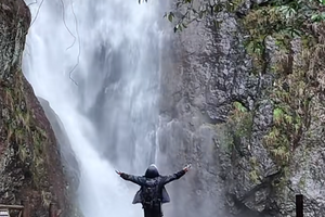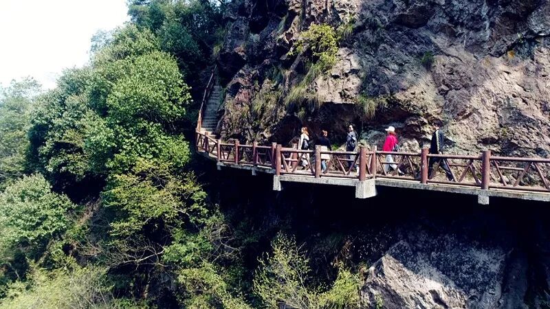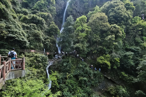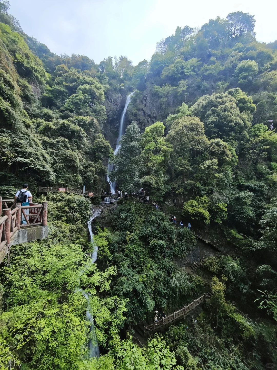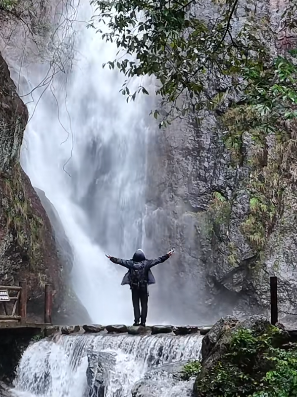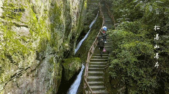 沿步道向上,沿途指示清晰立于瀑布前,清凉的水雾轻拂脸颊,感受独特过瀑布后,部分栈道路段陡峭,山势起伏,需缓慢攀爬.