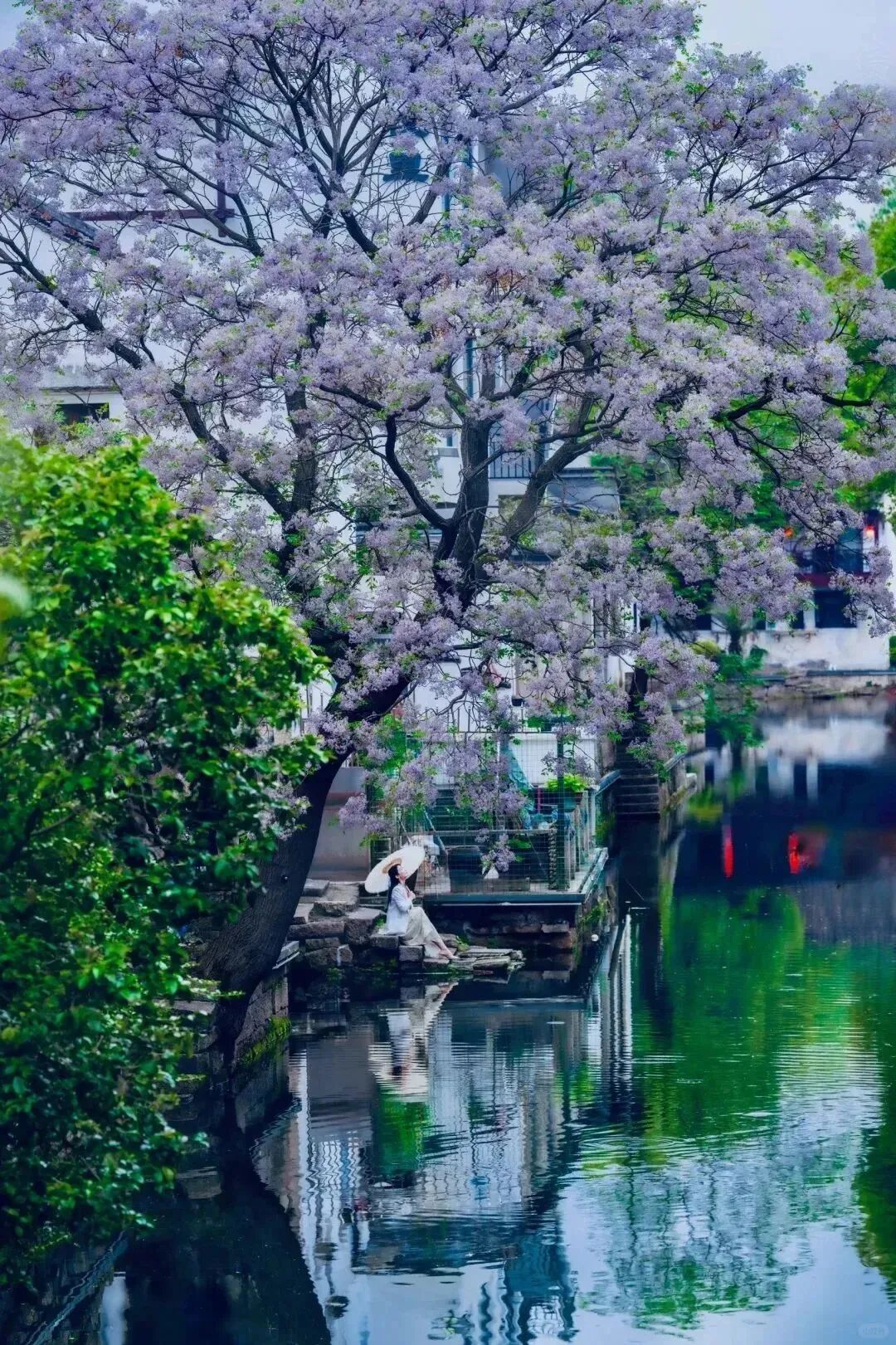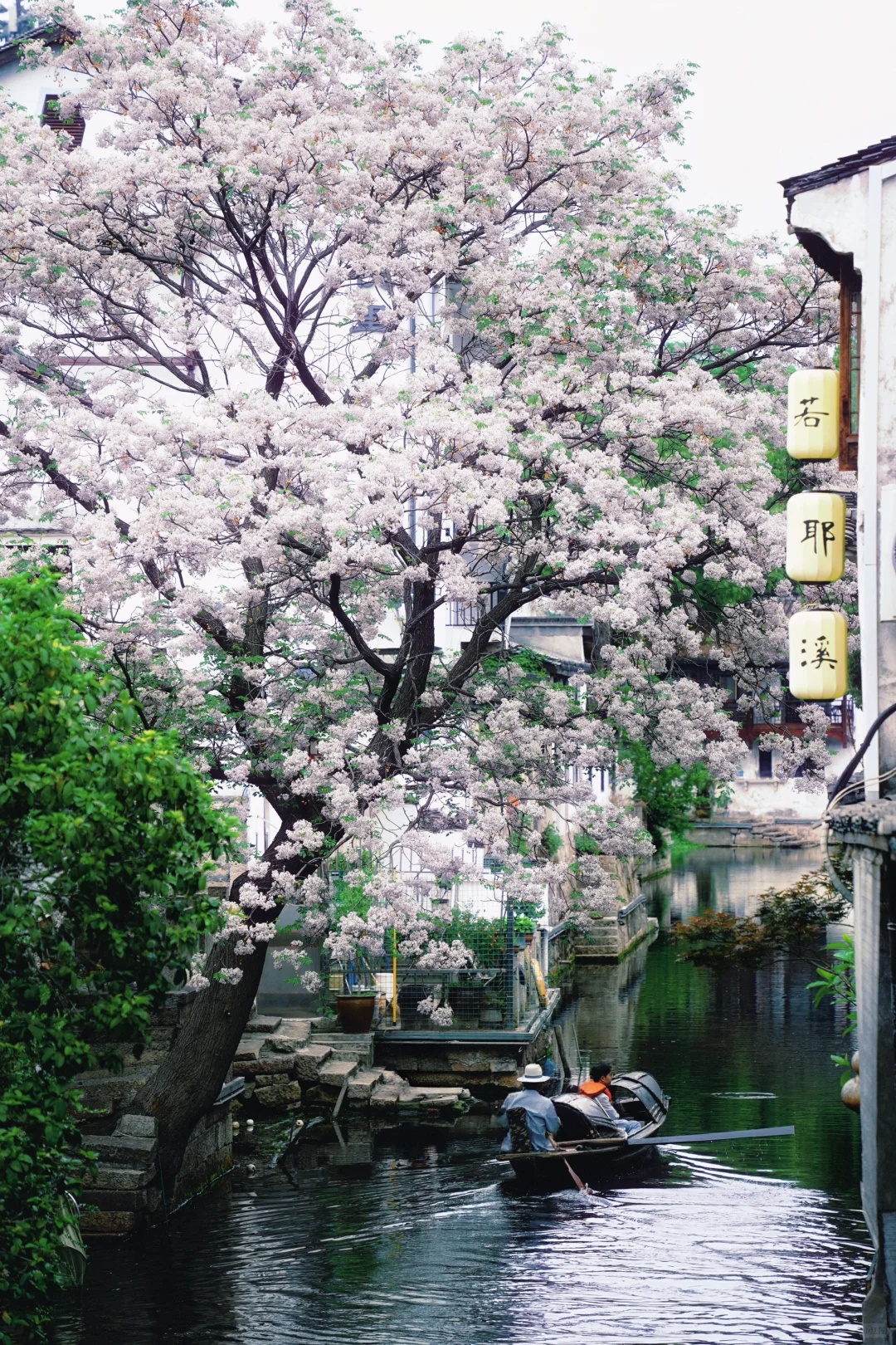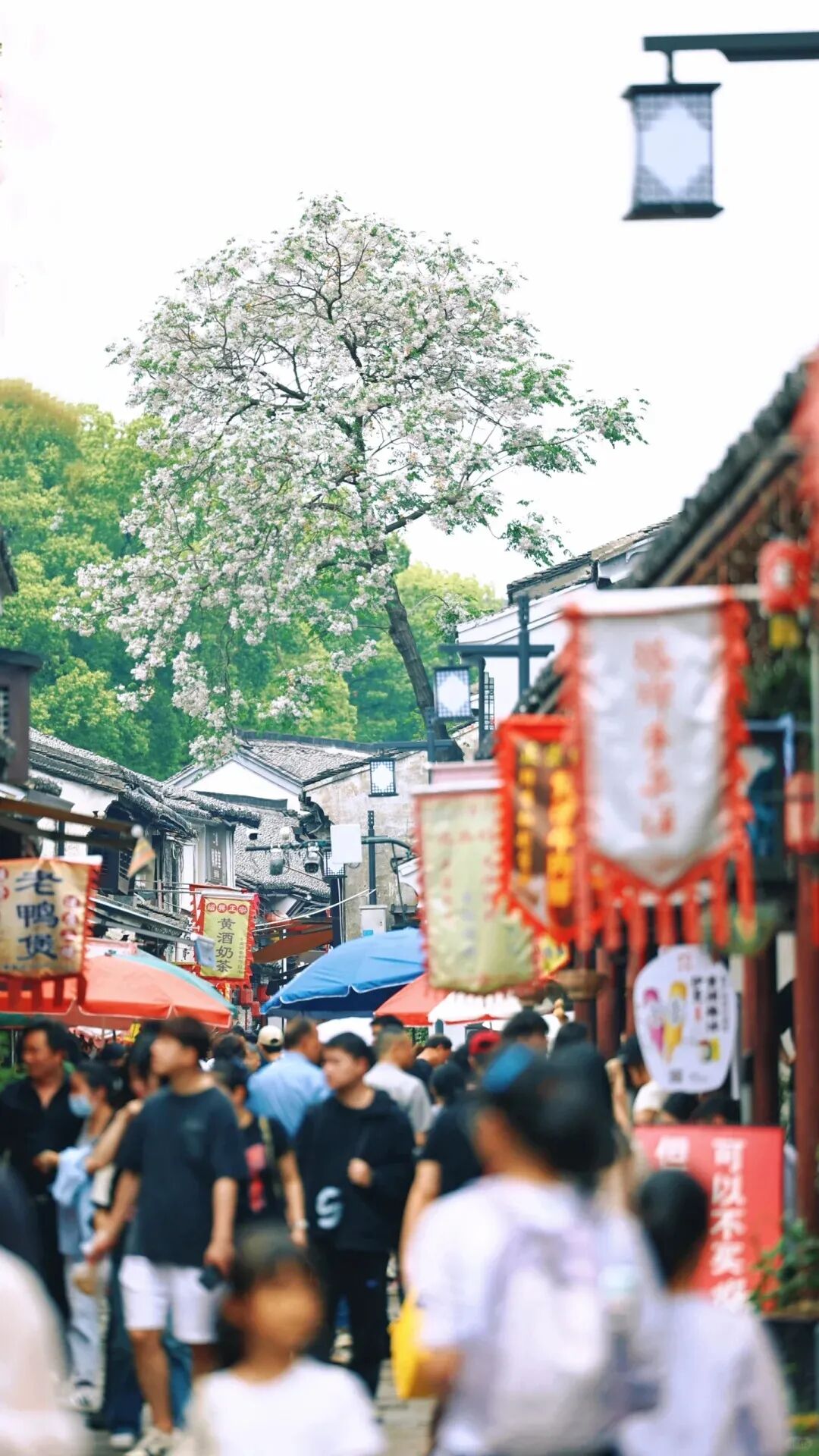 最佳拍照机位在仓桥直街的孔乙己酒家,或状元楼畔的那座小桥上,能拍到花随着风,很温柔地落在水里。或是静候片刻,待乌篷船悠悠划入画面,那便是将江南的温婉韵味尽数收纳,一张极具氛围感的大片便应运而生。