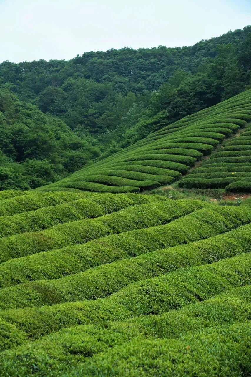 成排的茶树绵延成一片绿色海洋