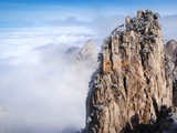 黄山雄踞于安徽南部,古称黟山(因峰岩青黑,遥望苍黛而名。后因传说轩辕黄帝曾在此炼丹,故改名为“黄山”)。今属黄山市。黄山风景区被誉为国之瑰宝、世界奇观,已成为中华民族壮丽山河的象征。黄山素有“中国第一奇山”之誉,山脉延绵 250 公里,呈东北-西南走向。山势峻极而险幻,千峰竞秀,万壑峥嵘,有千米以上高峰 77 座。36大峰,巍峨峻峭;36小峰,峥嵘秀丽。 “ 莲花 ”、“ 光明顶 ”、“ 天都 ”三大主峰,均海拔1800米以上。温泉、松谷、北海、玉屏、云谷、白云五大景区,风光殊异,各争其胜。