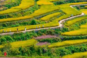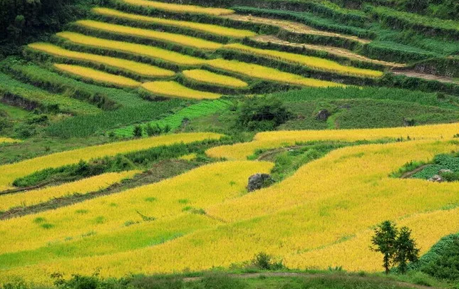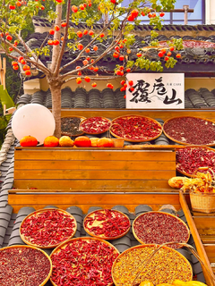 09:30 我们到达目的地——覆卮山景区!沿途可欣赏壮观的梯田麦浪,千年石浪,还有秋季限定晒秋美景。先去寻觅晒秋人家——东澄古村,沿着古朴的青石板路走在村落中,时间的脚步似乎瞬间变慢了下来,仿佛回到了上世纪八九十年代,古朴的石板路、秀色的巷陌构成了东澄古村的脉络,更恍若置身于一处迷宫一般,这个千年古村的晒秋,把秋天酿成了诗。覆卮山的秋景并非在观景平台,而是穿插在东澄村的各个角落。可以多角度的观赏秋日梯田的风景,领略秋天丰收的重量。