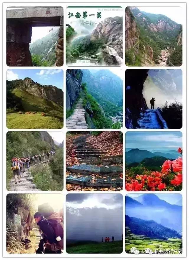 早上7:00点**公司楼下集合出发,包车前往安徽绩溪。车上领队带领互动游戏,一路欢声笑语。不够睡的还可以补睡一觉。不想睡的继续折腾,让我们一路充满笑声欢语......约11点半到达安徽绩溪徽杭古道入口,下车整装,上个洗手间,在入口处来一张大集体照,开始徽杭古道穿越,约半小时过来第一个上坡点来到古道的第一个农家,我们在这里吃中饭,(自带一餐干粮或者农家点菜都可以),吃完中餐我们继续出发,2小时的平缓小路后达到蓝天凹,这里是徽杭古道的最高点,海拔约900,登高远眺,稍作休息,拍照,练完绝世武功【哈哈】后一路下山穿越至永来村。徒步至浙川村农家晚餐回杭州,晚餐为极具徽州特色的宴席,只有在这里才能吃到哦,吃完晚饭约晚上6点打到回府,约晚上8点00到杭州送回公司大家回家休息,结束愉快的一天行程