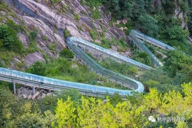 亮点二:超级滑滑梯,体验最长滑道。旱滑道长度1100米,海拔1100米,位于栈道通明洞出口处,落差300米,直达索道下站、大明山庄。目前是江南海拔最高、长度最长、坡度最大的高山旱滑道。